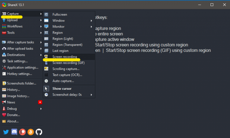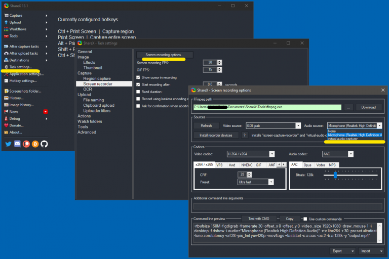1. Download ShareX from https://getsharex.com/, install, and run the program. The installation or the initial setup will ask you to download “ffmpeg.exe”. Allow it download.